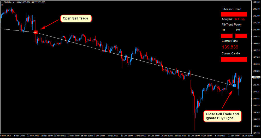 Close open trades when an opposite signal appears: / 当图表出现相反信号时,平仓现有交易: